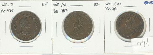 CH# WE-7 Br# 978, CH# WE-10A1 Br# 981, CH# WE-11A Br# 987. Grades vary from VF-20 to EF-40.