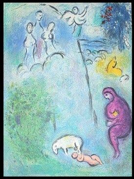 CHAGALL 1977 "DAPHNIS AND CHLOE" LITHOGRAPH - "CHLOE IS FOUND BY DRYAS" BY MARC CHAGALL FROM THE "DAPHNIS AND CHLOE" COLLECTION - PUBLISHED IN 1977 BY GEORGE BRAZILLER (BOOK PLATE) - APPROX. IMAGE SIZE: 9.5 X 12.75 - UNFRAMED