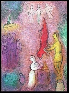 CHAGALL 1977 "DAPHNIS AND CHLOE" LITHOGRAPH - "THE SACRIFICE TO THE NYMPHS" BY MARC CHAGALL FROM THE "DAPHNIS AND CHLOE" COLLECTION - PUBLISHED IN 1977 BY GEORGE BRAZILLER (BOOK PLATE) - APPROX. IMAGE SIZE: 9.5 X 12.75 - UNFRAMED