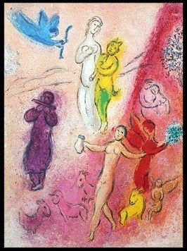 CHAGALL 1977 "DAPHNIS AND CHLOE" LITHOGRAPH - "THE TALE OF SYRINX" BY MARC CHAGALL FROM THE "DAPHNIS AND CHLOE" COLLECTION - PUBLISHED IN 1977 BY GEORGE BRAZILLER (BOOK PLATE) - APPROX. IMAGE SIZE: 9.5 X 12.75 - UNFRAMED