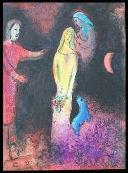 CHAGALL 1977 "DAPHNIS AND CHLOE" LITHOGRAPH - "CHLOE DRESSED AND COIFFURED BY CLEARISTA" BY MARC CHAGALL FROM THE "DAPHNIS AND CHLOE" COLLECTION - PUBLISHED IN 1977 BY GEORGE BRAZILLER (BOOK PLATE) - APPROX. IMAGE SIZE: 9.5 X 12.75 - UNFRAMED