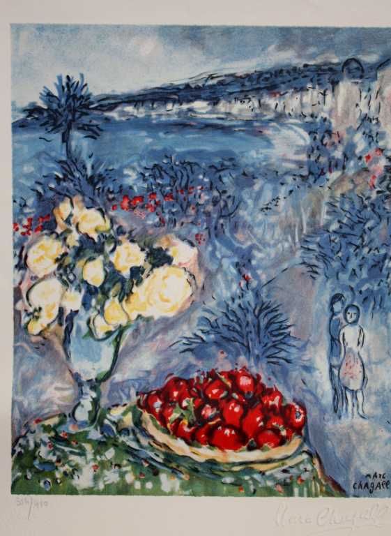 MARC CHAGALL - PRINTED BY "TERE A TETE" OF PARIS IN 2000 - ISSUED BY THE ARTA GALLERY IN JERUSALEM - LIMITED EDTION 356/450 - ARCHES PAPER - EMBOSSED SIGNATURE AND EMBOSSED AUTHENTICATION SEAL OF CHAGALL ESTATE / A.D.A.G.P. - PROFESSIONALLY FRAMED & MATTED - MINT