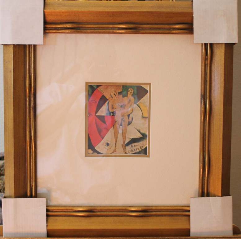MARC CHAGALL - "TAFEL IV HULDINGUNG AN POLLINAIRE" - HAND SIGNED BY THE ARTIST - BOOK PLATE - PROFESSIONALLY FRAMED AND MATTED - MINT CONDITION - IMAGE SIZE 6.5" X 6.5" - FRAMED SIZE 21.5" X 21" - COMES WITH CERTIFICATE OF AUTHENTICITY