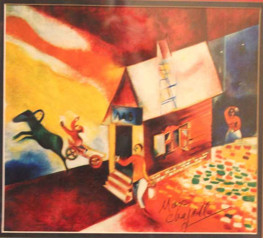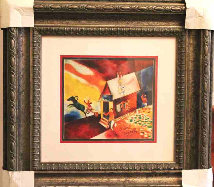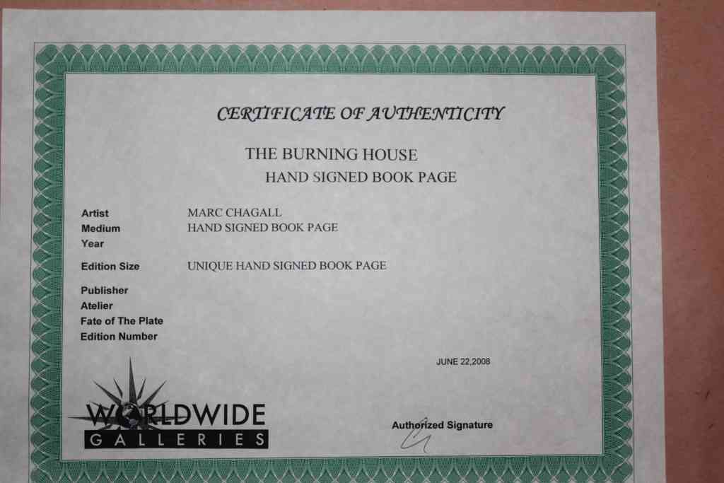 MARC CHAGALL - "THE BURNING HOUSE" - HAND SIGNED BY THE ARTIST - BOOK PLATE - PROFESSIONALLY FRAMED AND MATTED - MINT CONDITION - IMAGE SIZE 9.25" X 10.5" - FRAMED SIZE 23.5" X 25" - COMES WITH CERTIFICATE OF AUTHENTICITY