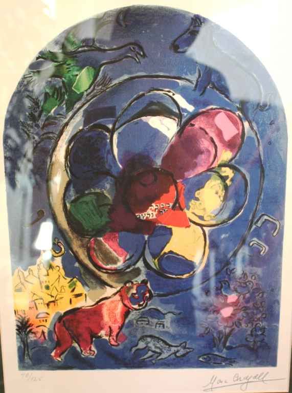 MARC CHAGALL - FROM THE JERUSALEM WINDOWS - "STAIN GLASS WINDOW I"- LTD EDITION LITHOGRAPH - PROFESSIONALLY FRAMED AND MATTED - MINT CONDITION - SIGNED IN THE PLATE - FRAMED SIZE APPX 26 X 22