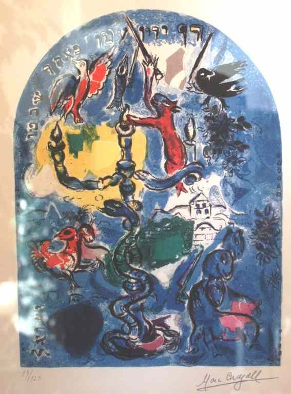 MARC CHAGALL - FROM THE JERUSALEM WINDOWS - - "STAIN GLASS WINDOW X"- LTD EDITION LITHOGRAPH - PROFESSIONALLY FRAMED AND MATTED - MINT CONDITION - SIGNED IN THE PLATE - FRAMED SIZE APPX 25 X 21