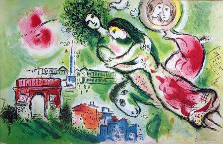 MARC CHAGALL "ROMEO & JULIET" - LIMITED EDITION LITHOGRAPH -39X25 (IMAGE) - MINT - PROFESSIONALLY FRAMED & MATTED - NUMBERED IN PENCIL - MINT