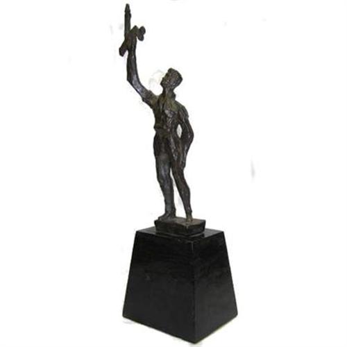 This bronze sculpture by Chaim Gross (1904-1991) is entitled "Torch of Learning Award" and was completed in 1970. It measures 14" high, 4" wide and 3.5" deep including its original ebonized wooden pedestal. Bronze alone measures 10" high, 3" wide and 2" deep. Depicted is a man holding upright and bent torches, the familiar logo of the Hebew University of Jerusalem. The Torch of Learning Award is conferred annually by American Friends of The Hebrew University on a member of the legal profession who has influenced the course of justice and higher learning in the United States and Israel. This item resides in our client's place in Westchester County and may be seen by appointment.