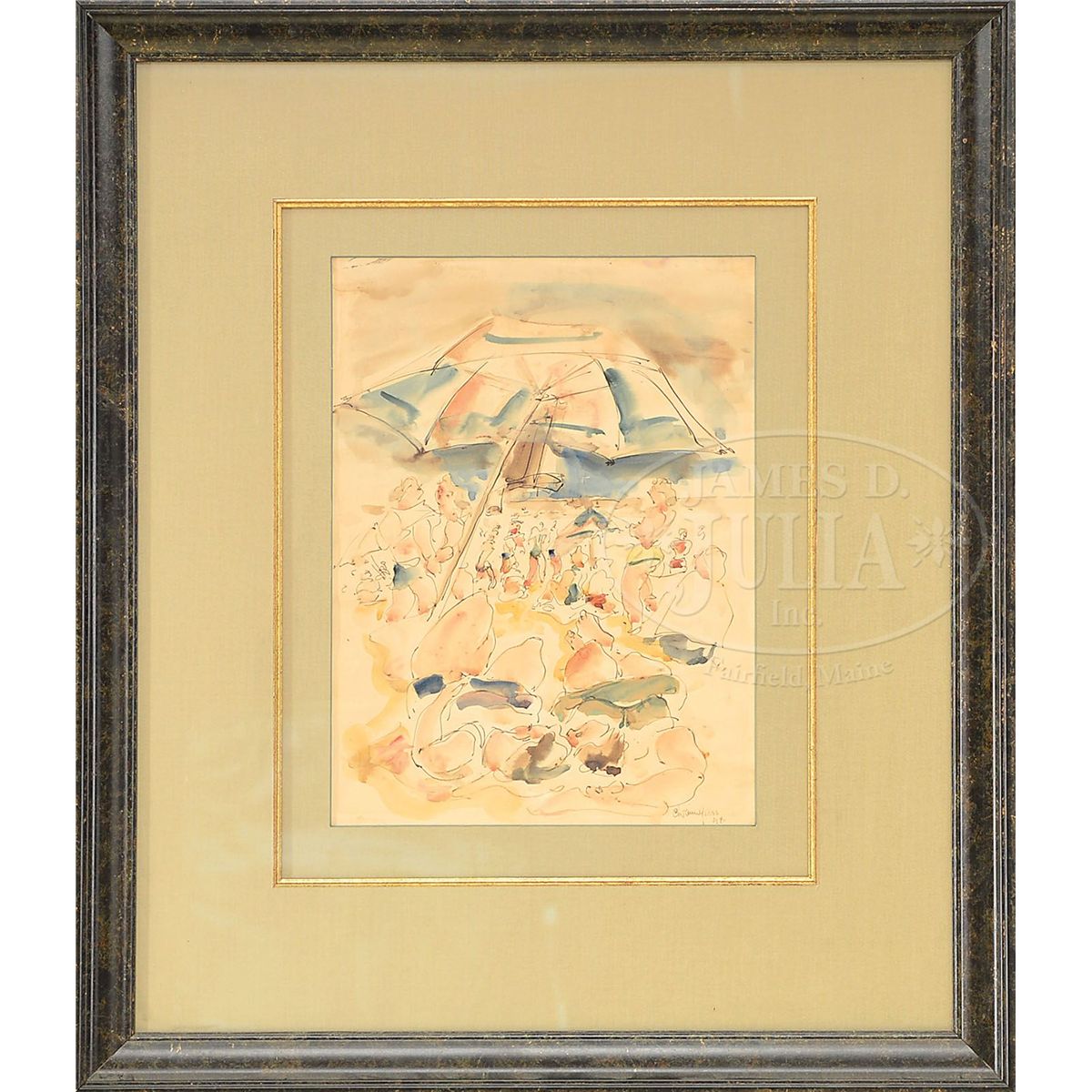Watercolor and ink on paper Housed in a decorative painted wood frame with green linen double matte with gold edge Signed "Chaim Gross 1940" lower right SIZE: Sight: 14-1/2" x 10-3/4". Overall: 27-3/4" x 23-3/4". CONDITION: Good, not examined out of frame. 7-70365