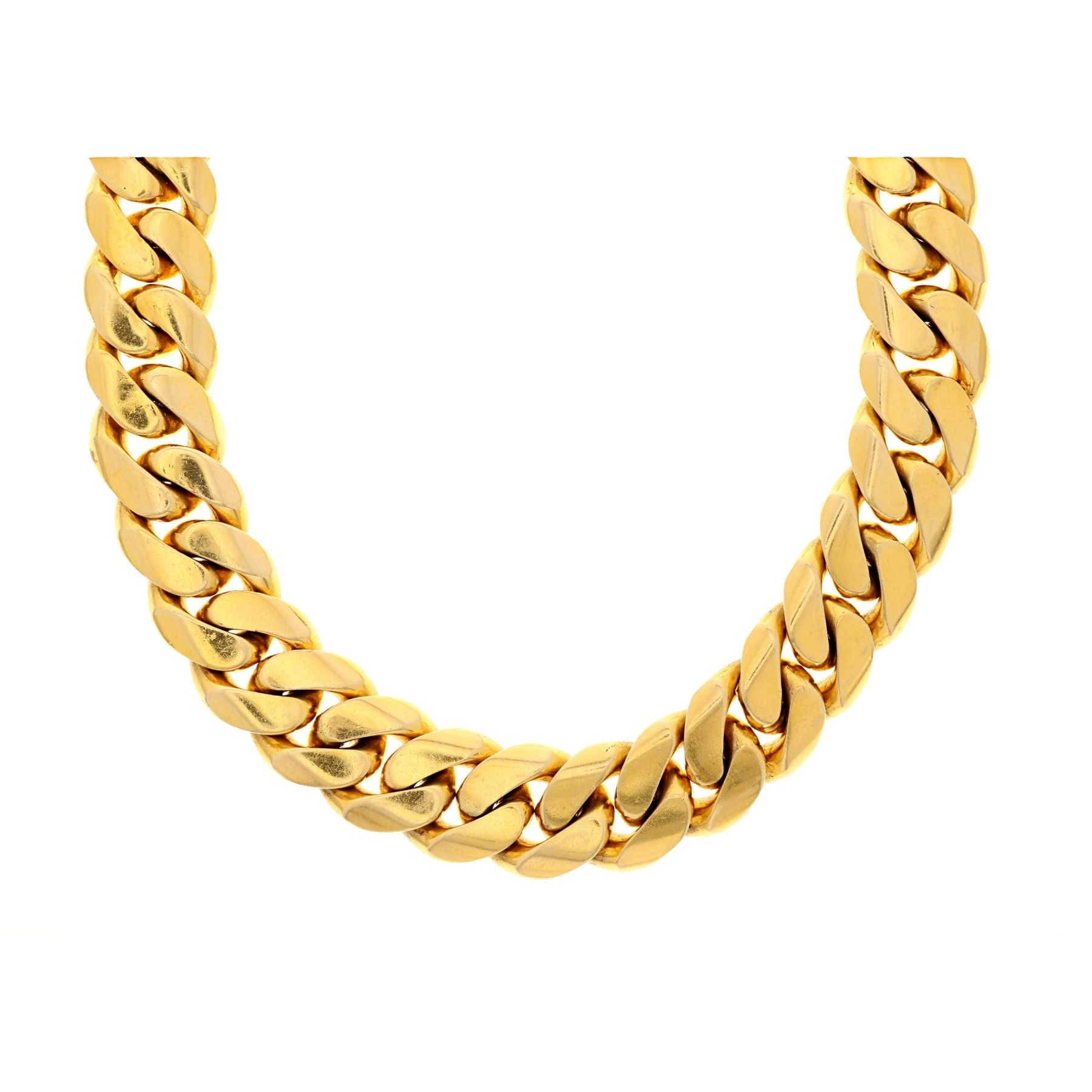 CHAIN: [1] 14ky stamped chain, 31.5" long, 23.77mm wide, box clasp with two safety clasps; 1275 grams.
