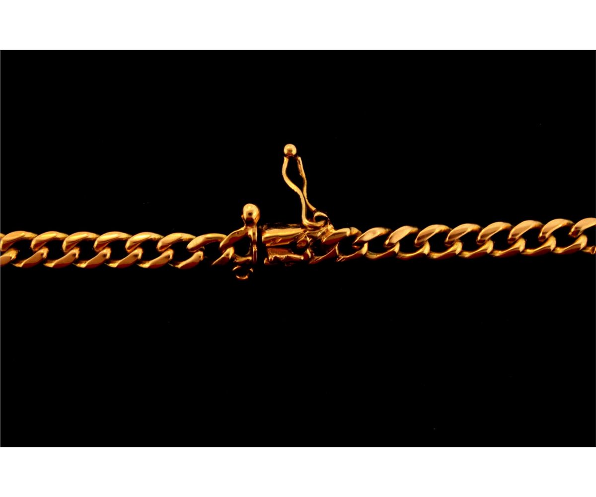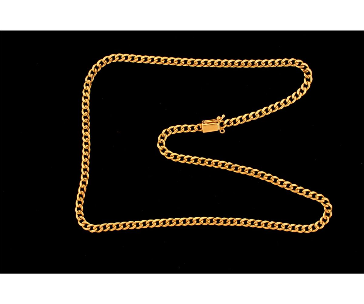 CHAIN: [1] 18KYG curb link chain, 25 1/2 inches; 60.0 grams. The clasp is soldered closed.