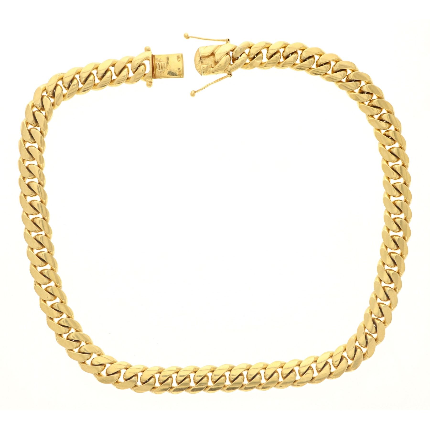 CHAIN: [1] 18ky stamped Cuban link chain; 24 inches long, 16.15mm wide, box clasp w/ 2 safety clasps; 524.5 grams.