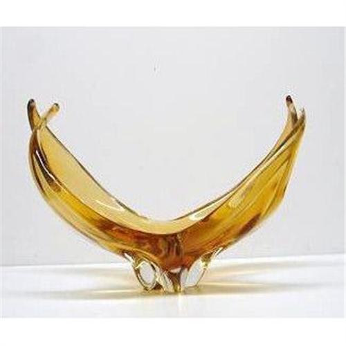 THIS IS STUNNING ART GLASS BOWL, MADE BY WELL KNOWN ART GLASS MAKERS CHALET - THIS PIECE IS NOT SIGNED - BUT I GUARANTEE IT IS CHALET, (i know Chalet glass when i see one), IT IS A BEAUTIFUL ARTISTIC CREATION FROM THE LOVELY GOLDEN COLOR GLASS, STANDING ON A SCULPTURED HEAVY PEDESTAL, It stands about 8 1/4" high and about 12" in wide x and about 5 1/2" wide., Excellent condition free of chips or cracks, US Buyer to pay 22.00 for shipping plus insurance.THANKS.
