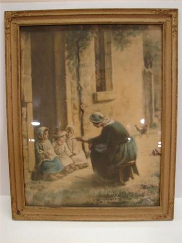 CHALK SKETCH ON PAPER. Depicts a peasant woman feeding three seated children. Marked in lower right “©8020”. Sketch rests in gilt wood & gesso frame that show loss to gesso at corners. 23.75” x 29.75” framed.