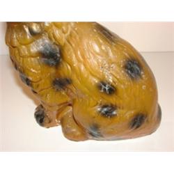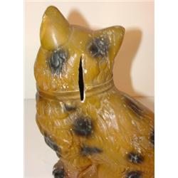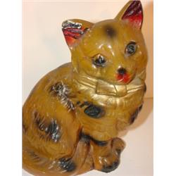 CHALKWARE CAT BANK. Vertical coin slot on back of head. Paint shows minor signs of flaking and chipping. 9.25" H