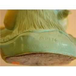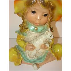 CHALKWARE STATUETTE OF YOUNG GIRL HOLDING CAT. Good overall condition. Marked on reverse "293 Universal Statuary Cord-1974". 10.5" H