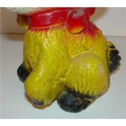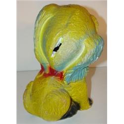 CHALKWARE DOG BANK STATUETTE. Vertical coin slot in back of head. Minimal loss to paint on left rear leg. Good overall condition. 10" H