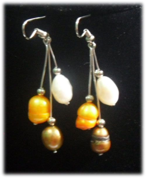 CHAMPAGNE-BROWN-WHITE PEARL TEARDROP DANGLING EARRINGS; **|**|** CHAMPAGNE-BROWN-WHITE PEARL TEARDROP DANGLING EARRINGS; ; MSRP: $100