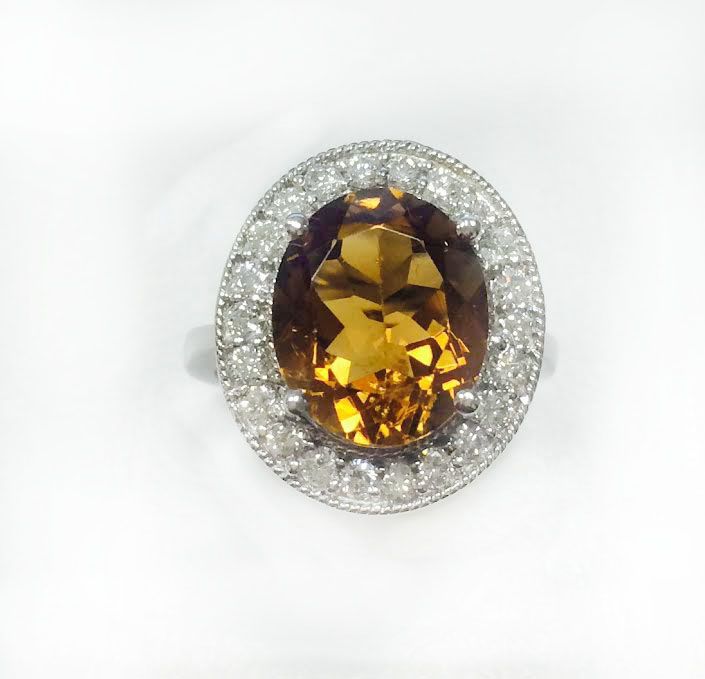 CHAMPAGNE COLOR TOURMALINE OVAL 4.95CT, 5.38GRAM / DIAMOND 0.58CT / TOURMALINE 4.85CT