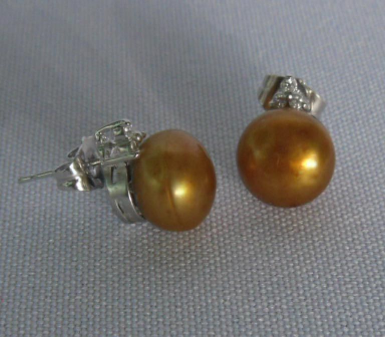 CHAMPAGNE PEARL 3-STONE CZ EARRINGS; AUTHENTIC PHILIPPI **|**|** CHAMPAGNE PEARL 3-STONE CZ EARRINGS; AUTHENTIC PHILIPPINE PEARL; METAL- SILVER ; MSRP: $300