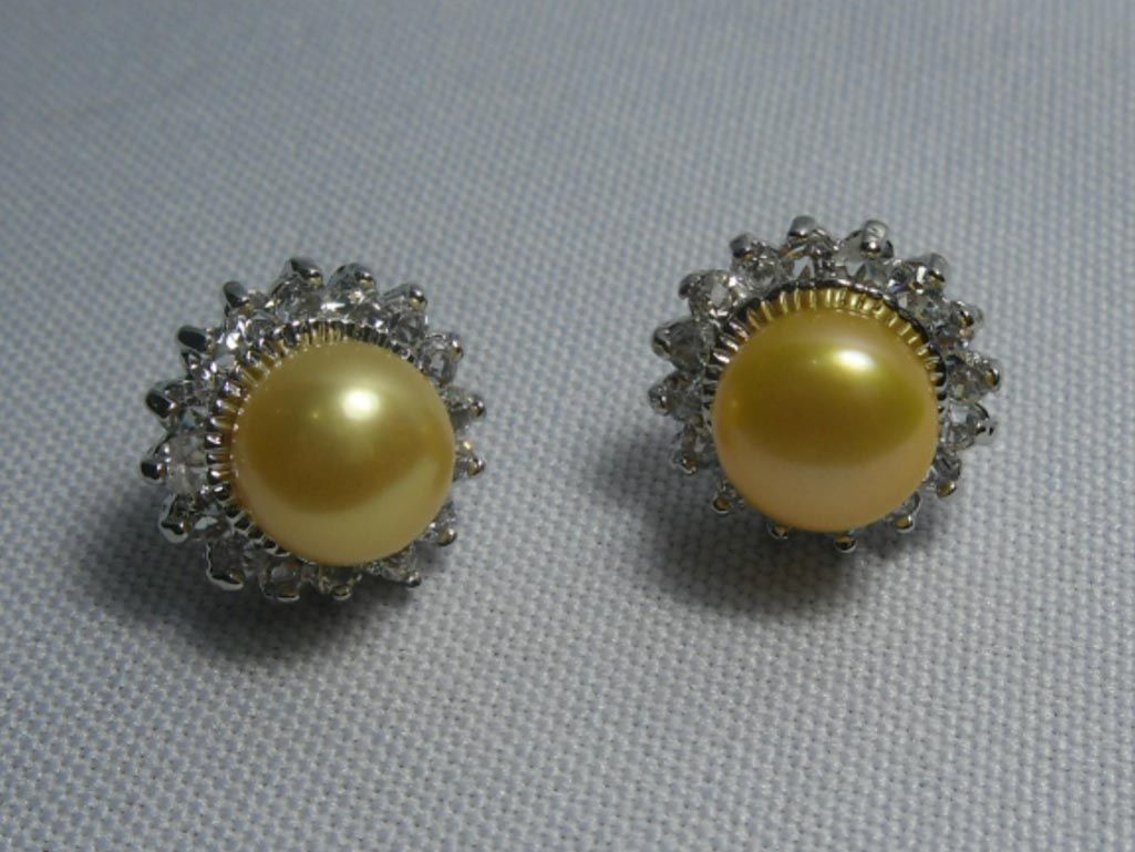 CHAMPAGNE PEARL ROUND CZ EARRINGS; AUTHENTIC PHILIPPINE **|**|** CHAMPAGNE PEARL ROUND CZ EARRINGS; AUTHENTIC PHILIPPINE PEARL; METAL-SILVER ; MSRP: $300
