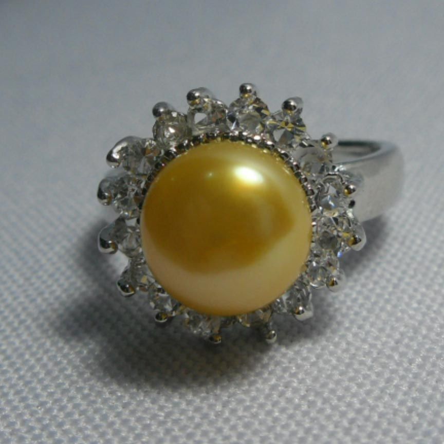 CHAMPAGNE PEARL ROUND CZ RING; AUTHENTIC PHILIPPINE PEA **|**|** CHAMPAGNE PEARL ROUND CZ RING; AUTHENTIC PHILIPPINE PEARL; METAL-SILVER; SIZE - 7 ; MSRP: $300