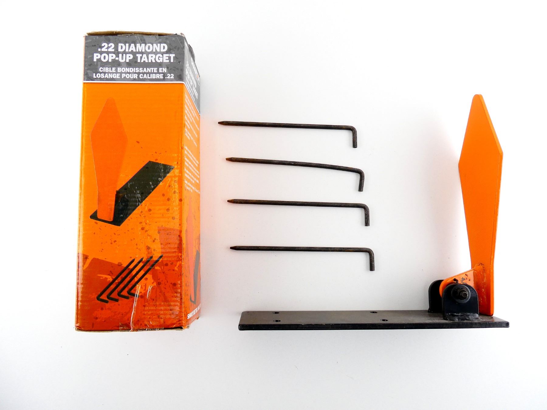 (1) POP-UP TARGET, STEEL CONSTRUCTION, DIAMOND SHAPE, HI-VIS ORANGE, APPROX. 7.5" X 2.75". SEE PHOTOS.