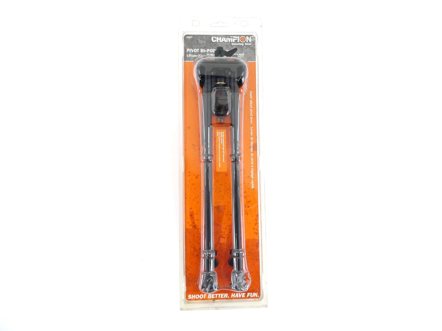 (1) BLACK ALUMINIUM BIPOD, WITH RUBBER FEET, SLING SWIVEL STUD ATTACHMENT, WITH MOUNT, SPRING LOADED LEGS, ADJUSTABLE LEGS FROM 13.5" TO 23", PART #: 40857, NOS IN ORIGINAL PACKAGING. SEE PHOTOS.
