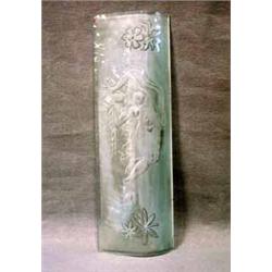 VÄGGLAMPA, GLÖSSNER & CO, KOMPOSITION GUNNAR TORHAMN, SVÄNGD FORM, BLÄSTRAT GLAS MED DEKOR AV NAKEN LIGGANDE KVINNA I MÄSSINGSMONTAGE, H22, L66