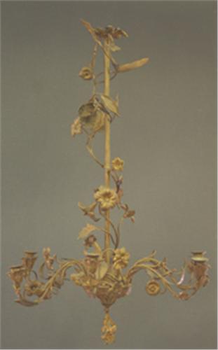 LJUSKRONA, BRONS, FÖR 6 LJUS, RIKT ORNAMENTERAD FÖRGYLLD BRONS, DEKOR AV BLOMSTERSTJÄLKAR OCH BLADVERK, NYROKOKO, 1800-TALETS ANDRA HÄLFT, H80, D55