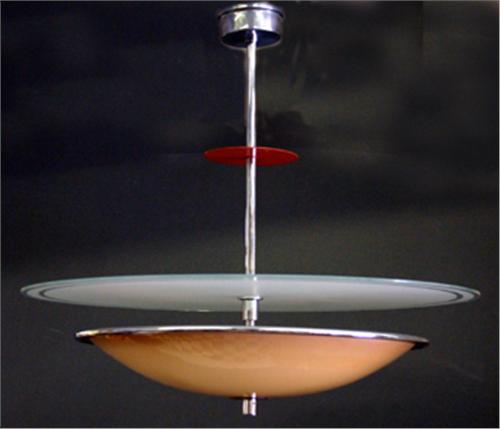 TAKARMATUR, KROM OCH RÖDLACKERAD PLÅT, GULBEIGE GLASSKÅL SAMT SATURNUSSKIVA AV BLÄSTRAT GLAS, FUNKIS 1930-TAL, H60, D70
