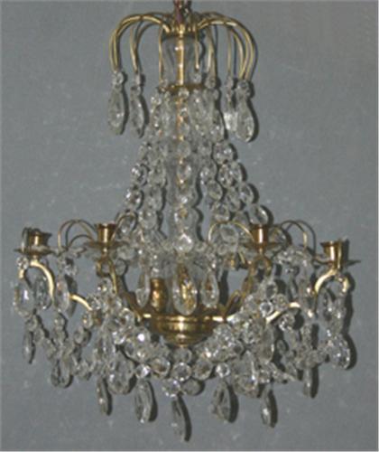 KRISTALLKRONA FÖR 6 LJUS, STOMME AV MÄSSING, DROPPBOTTEN MED GIRLANDER, LOUIS XVI-STIL, H80, D45