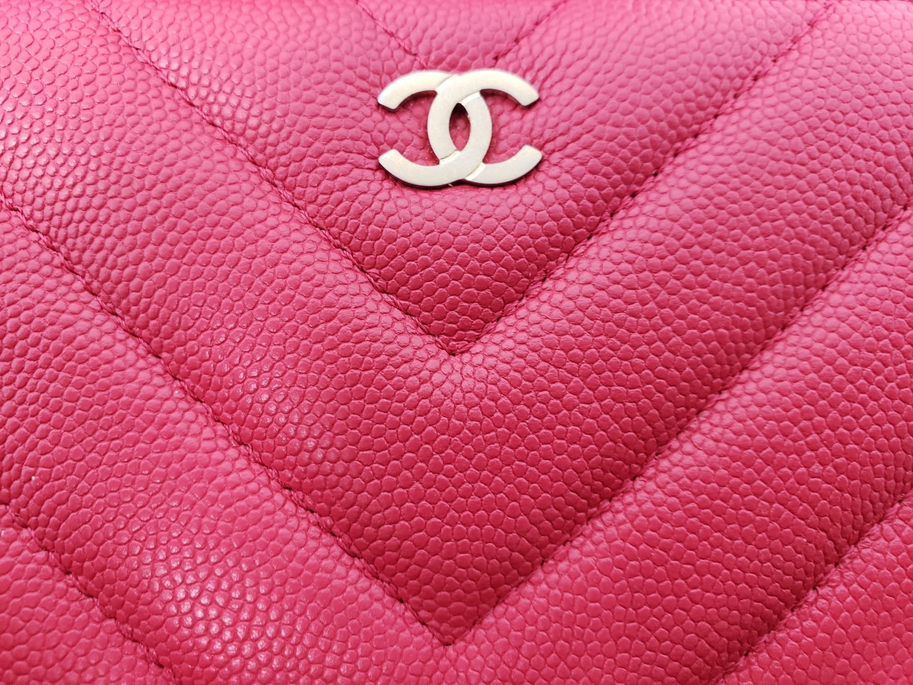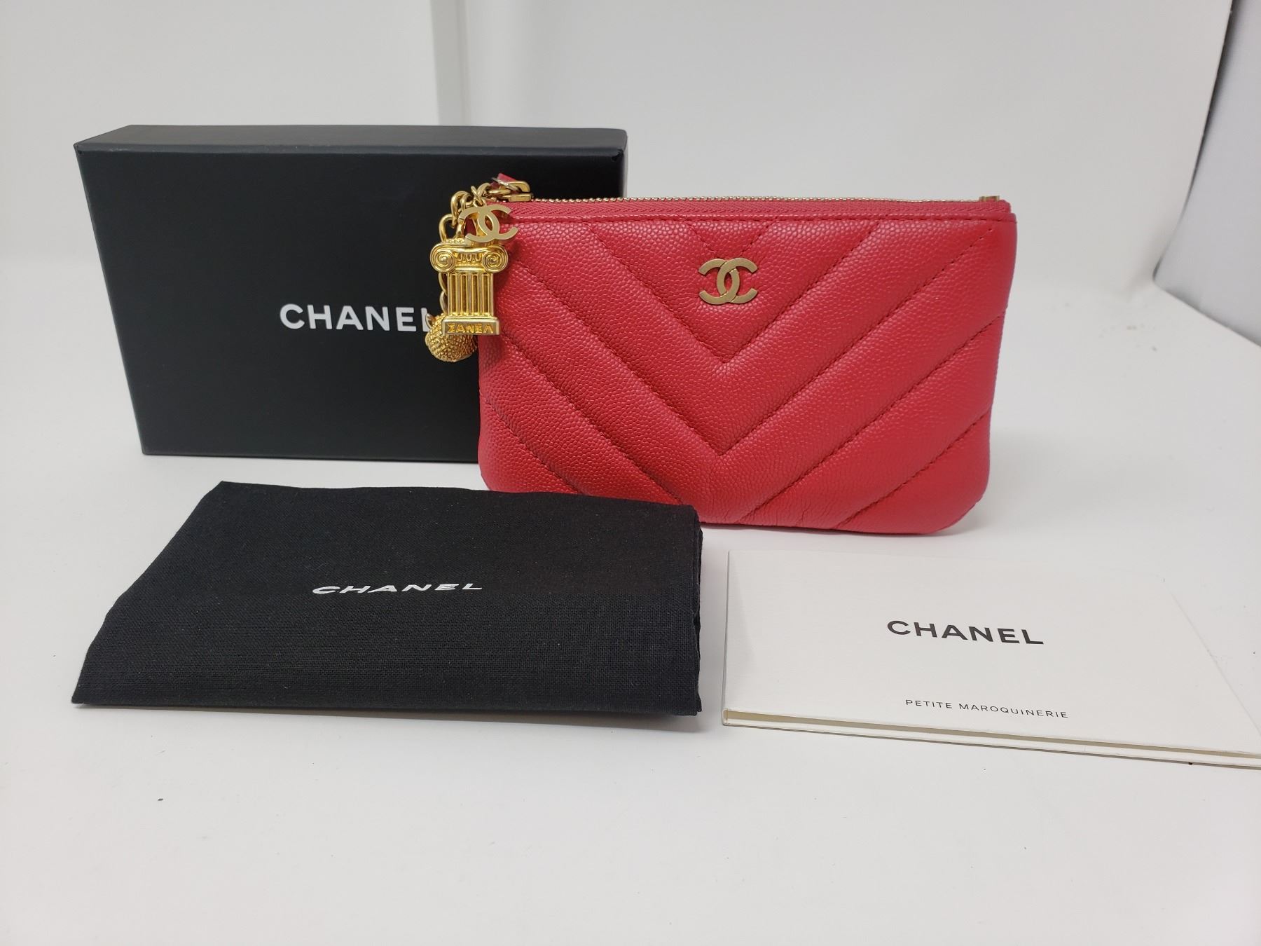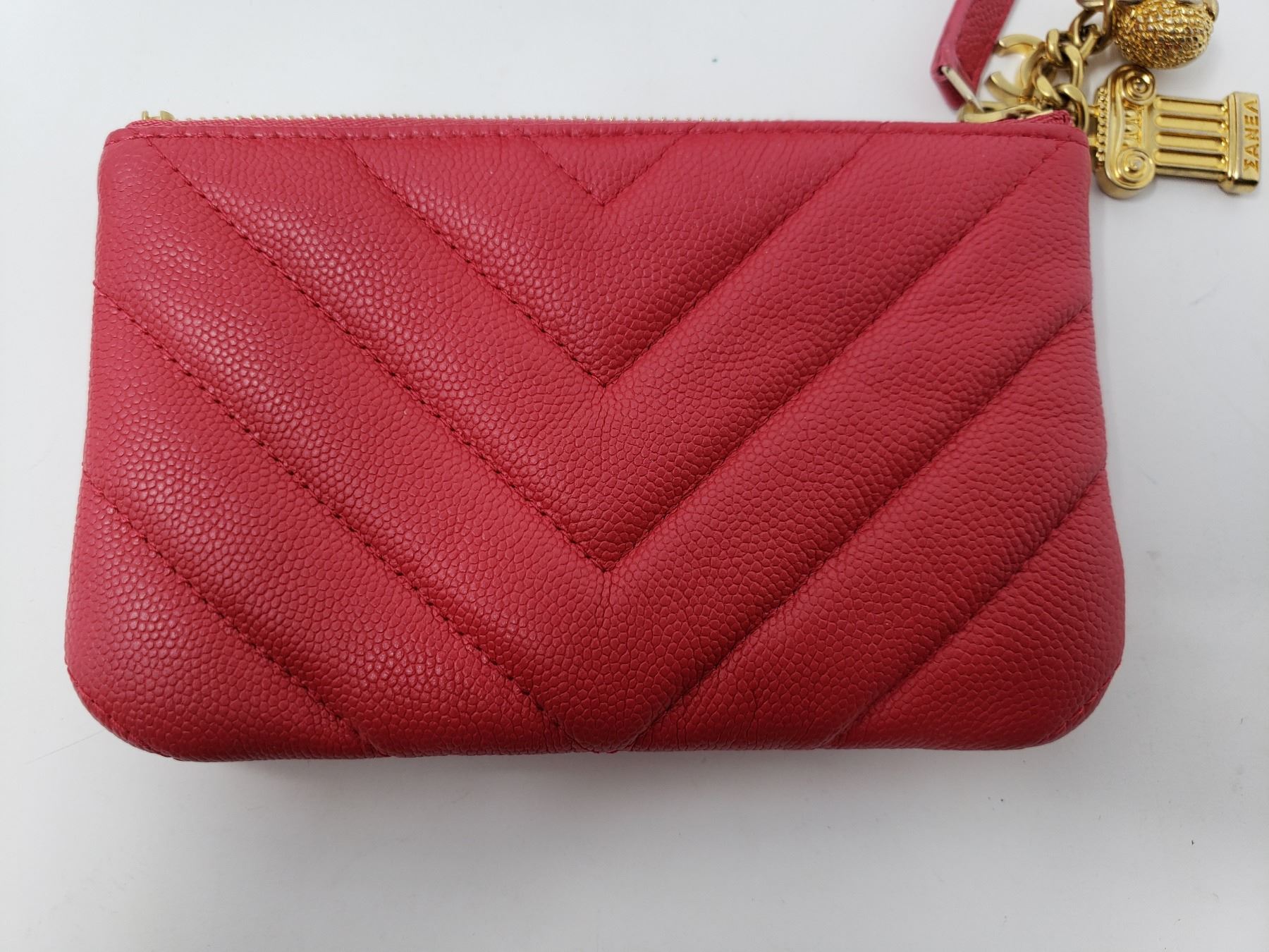 CHANEL Caviar Chevron Quilted Small Ancient Greek Charms Cosmetic Case Fuchsia