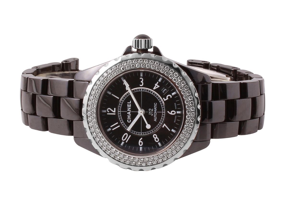 $14,160.00 Appraisal Value. Case: Ceramic, 38mm in diameter, diamond bezel, signed on the back "CHANEL PARIS J12 I.M 07876 AUTOMATIC". Dial: Black, Arabic numerals and baton hands. Model J2, Movement: Automatic Bracelet: Ceramic with magnetic hidden clasp. 6.5" in length. Condition: Movement is very good and running. Case is very good, dial is very good, and bracelet is very good. One Hundred Twenty prong set round brilliant cut diamonds, measuring 1.40 - 1.40 x 0.84mm (depth est.) approximate total weight of 120 Stones = 1.20ct. Clarity: VS-1 to VS-2. Color: F, Cut is Excellent. Diamonds are graded in the mounting, unless otherwise stated. Total Weight of Diamonds 1.20ct. Please see photo of Western Gemological Laboratory Appraisal for full description. We Ship Worldwide! The descriptions listed should not be construed as an appraisal. The detail is provided as a guideline for color, clarity, weights and measurements to the best of our ability. We welcome inspections. WE SHIP WORLDWIDE!