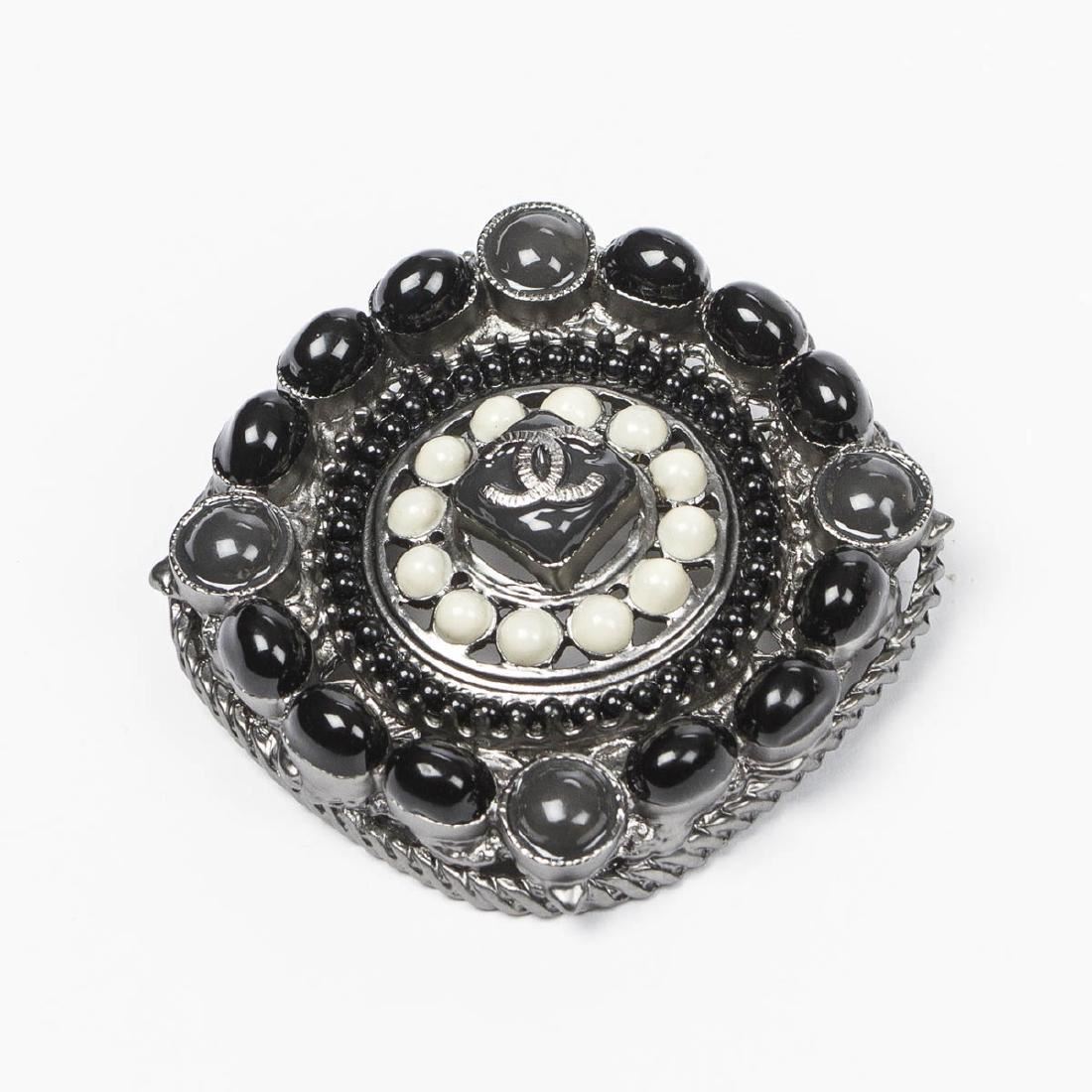 CHANEL Pearl around Brooch in silver rhinestones, grey, black and ivory pearls and grey and black enamel. Brooch in very good condition . Please note that if you are located in Europe, the Irish VAT of 23% will be added on top of the hammer price for the purchase of the product.
