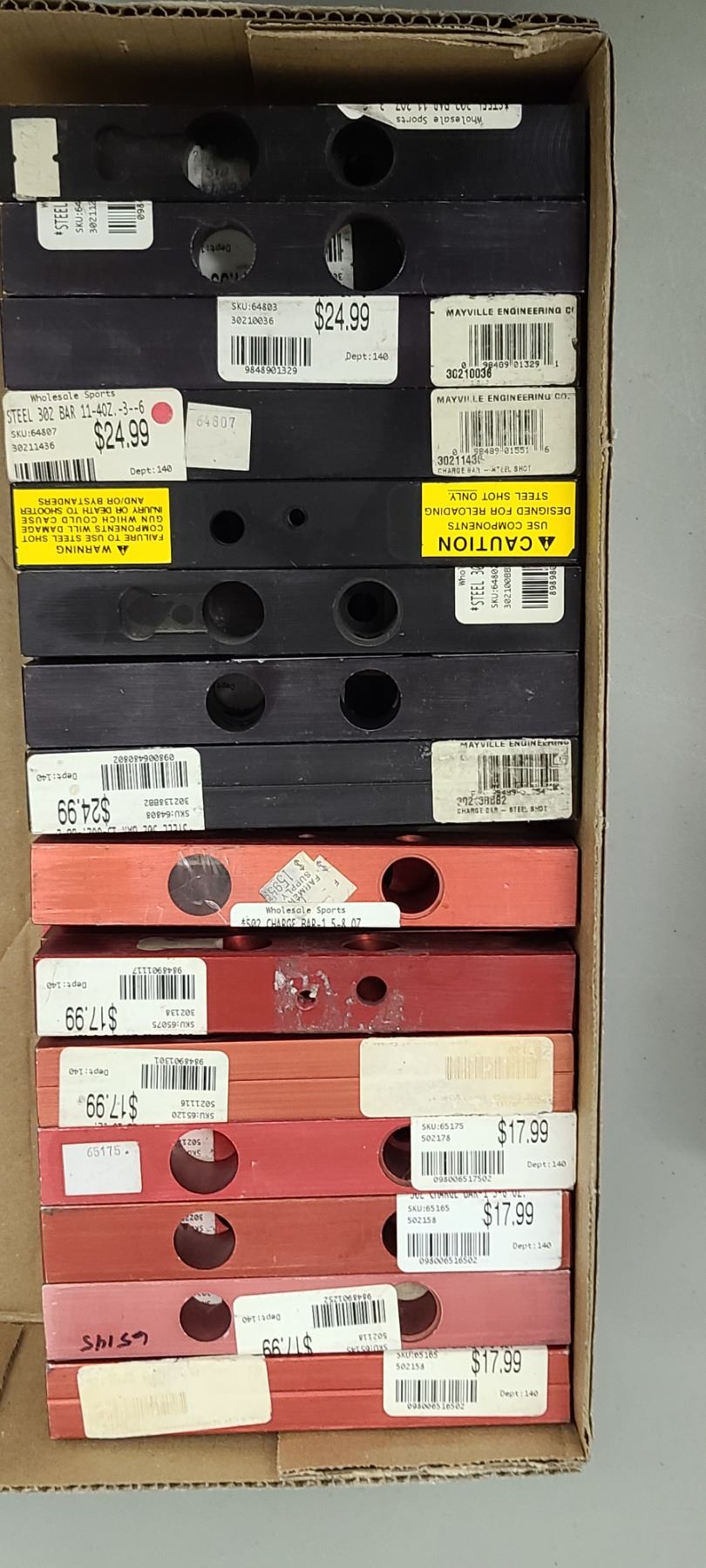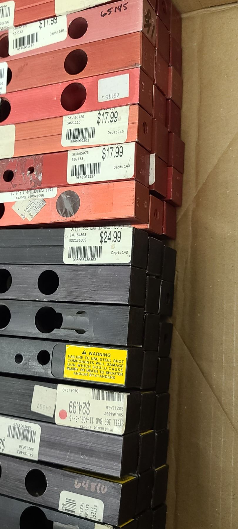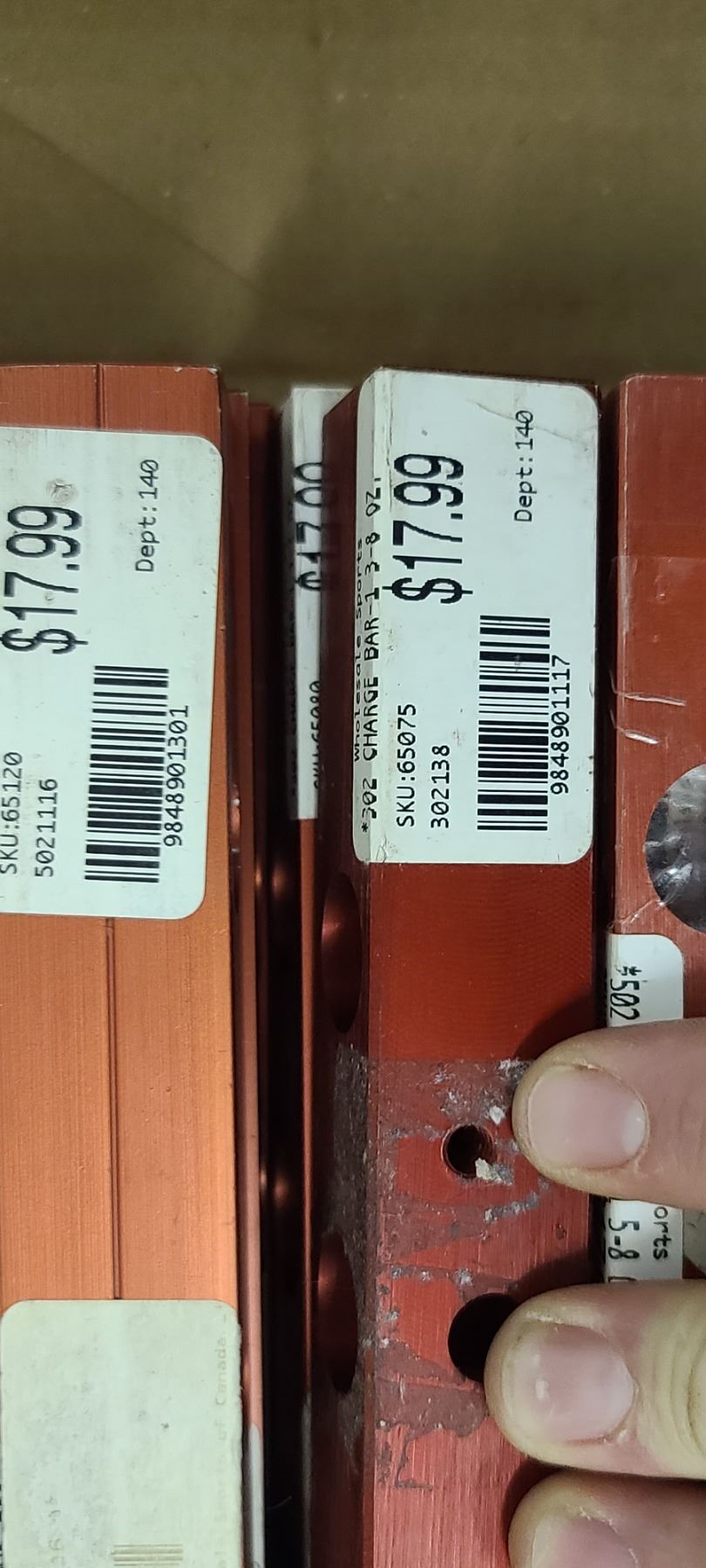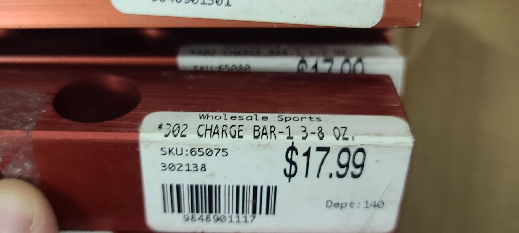 CHARGE BAR-1 3/8OZ QTY 21, STEEL 302 BAR 7-8OZ QTY 24.RETAIL VALUE $978