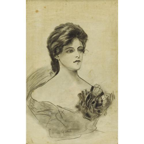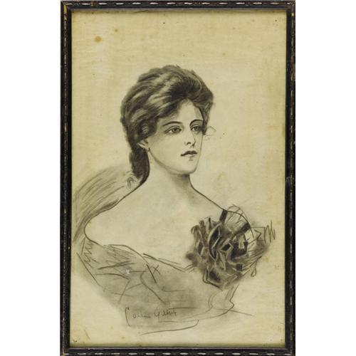 <B>CHARLES ALLAN GILBERT</B></I> (American 1873-1929)<BR><I>Untitled (Portrait Of A Woman)</B></I><BR>Graphite on paper<BR>17 x 11 inches (43.2 x 27.9 cm)<BR>Signed lower margin: <I>C. Allen Gilbert</B></I><BR><BR> <B>Condition Report:</B> minor discoloration of paper around edges and dark spots throughout<BR><BR><b>Shipping:</b> Requires 3rd Party Shipping (<a target="_blank" href="http://www.heritageauctions.com/common/shipping.php">view shipping information</a>)