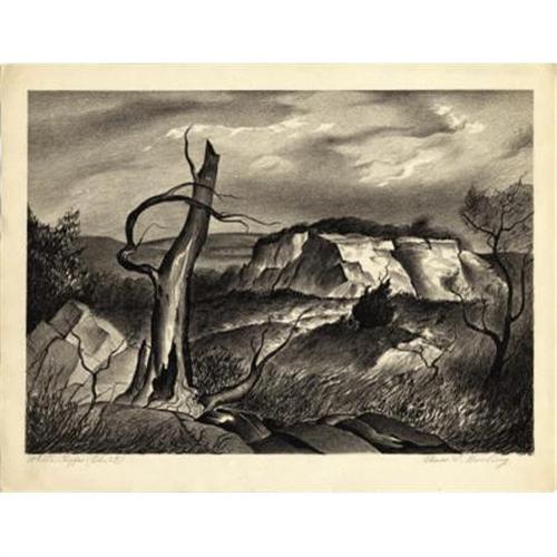 <B>CHARLES BOWLING (1891-1995)</B></I><BR><I>White Cliffs</B></I><BR>Lithograph<BR>9-1/4 x 13 inches (23.5 x 33.0 cm)<BR>Signed lower right<BR>Titled lower left<BR><BR> This is a rare and desirable Bowling lithograph. It comes from the artist's personal collection, is in excellent condition, and has never been mounted.<BR><BR>Provenance:<BR>Charles Bowling<BR>Frances Layne (daughter)<BR>Pat Layne (grandson)<B>Condition Report:</B> Excellent condition. Unframed.<BR><BR><b>Shipping:</b> Requires 3rd Party Shipping (<a target="_blank" href="http://www.heritageauctions.com/common/shipping.php">view shipping information</a>)