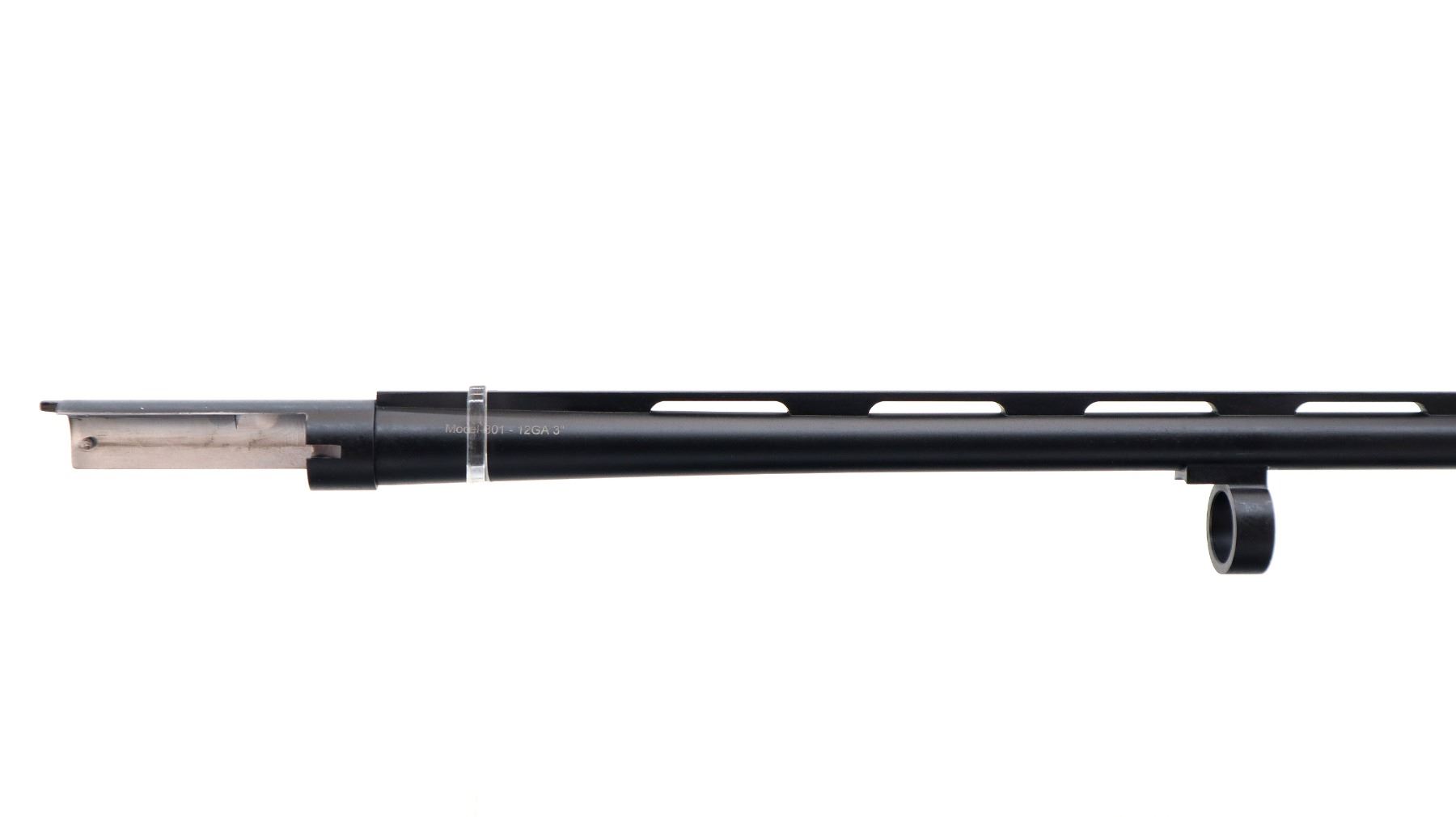 Main Description: Blade front sight, Parkerized round barrel, grooved black alloy receiver. Two piece black synthetic stocks, grooved extended forearm with short rail at front, checkered pistol grip, ambi cheek rest, black vented rubber recoil pad, grip cap, swivel studs. Spare Barrel: 12 G X 3", 28", Excellent Bore, Removable IM Choke, Brass bead, Parkerized finish, vent rib. Accessories include: Full Choke with wrench and case, magtube plug.