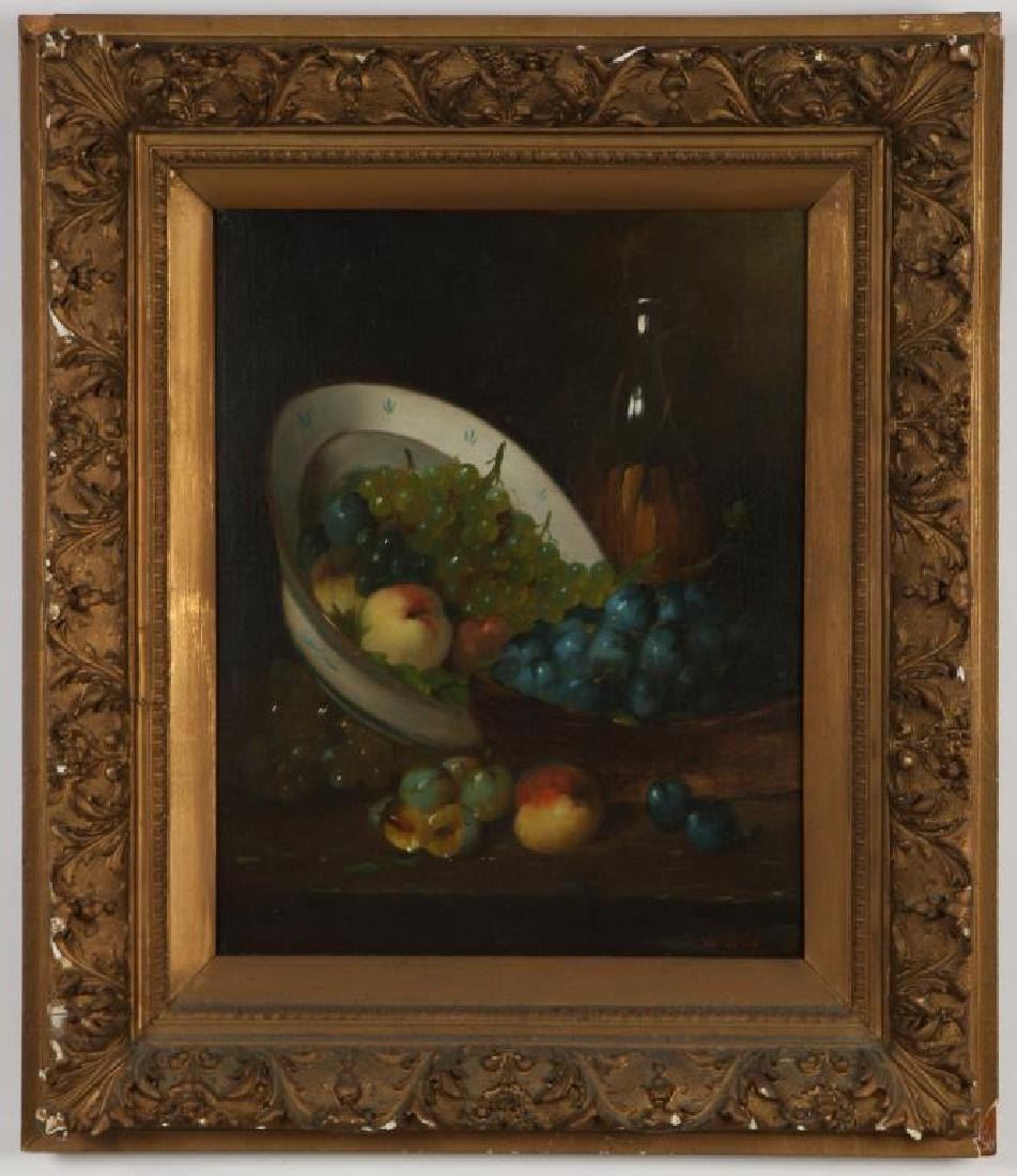 "Still life with Fruit on a Table" oil on canvas 21 x 16 1/2 inches. signed. framed 30 x 26 inches (overall)