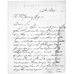 <b>1500. CHARLES E. BARBER</b> American engraver, his principal work was as an engraver of coin dies, including the Barber Half, Barber dimes, Liberty head nickel, and many other coins and medals. Good content A.L.S. on Mint of the United States letterhead, Philadelphia, Nov. 24, 1891 to H. H. Zearing, in part: "<i>...I suppose you know there is no machine that will give a finished work, the reduction in [?] case statuette or die requiring considerable labor to finish. I therefore take it for granted you wish me to furnish the die finished, reduced from your mold. The cost of a pair of dies such as you desire will be about $200.00....[I] would prefer having the model if you have it, say three or four inches larger than medal required...</i>". Heavy dampstain damage has caused the loss or partial loss of about 15 words of text, as well as Barber's last name, the balance of the letter bears slight wear and soiling. Particularly interesting is the fact that it appears Barber has undertaken work beyond his official duties at the Mint, likely in violation of his position.<b>$400-600</b>
