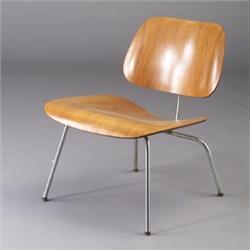 CHARLES EAMES for HERMAN MILLER LCM chair with walnut finish on a bright chrome tubular base. Minor pitting. Incised LCM. 26" x 22" x 23" $300 - 500