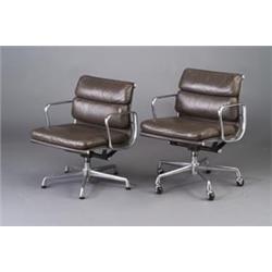 CHARLES EAMES for HERMAN MILLER pair of Soft Pad aluminum armchairs with swivel mounts, both with...