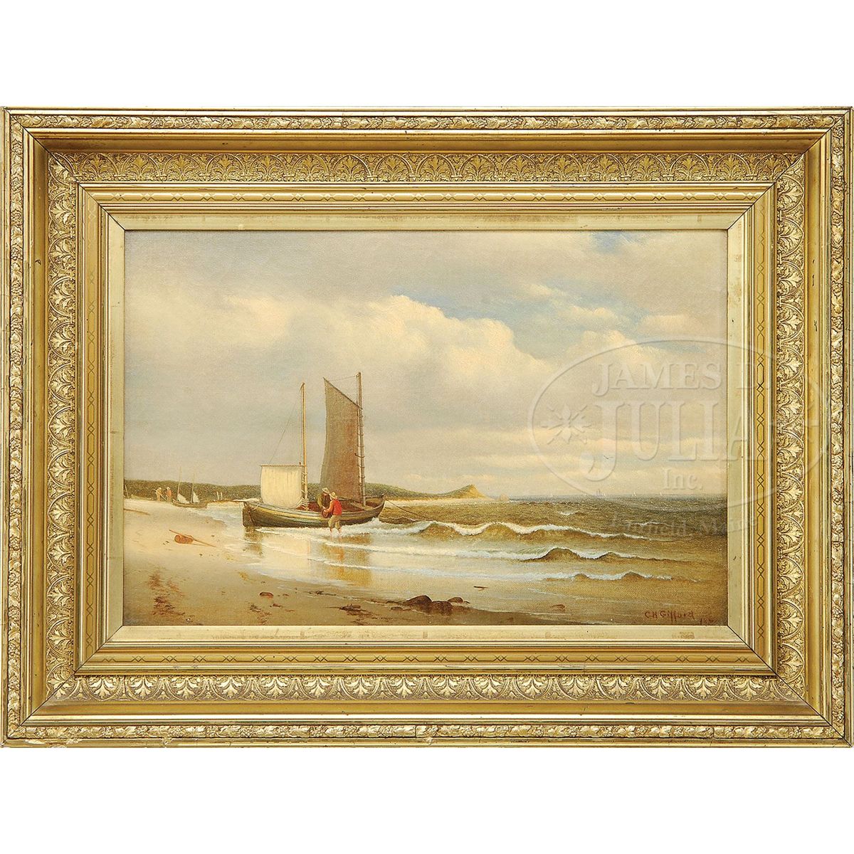 Oil on canvas Housed in its original gesso decorated gilt frame Signed "C.H. Gifford 1871", lower right SIZE: 12" x 18". Overall: 18-1/2" x 24-1/2" CONDITION: Minor touch-up, very good 9-28421