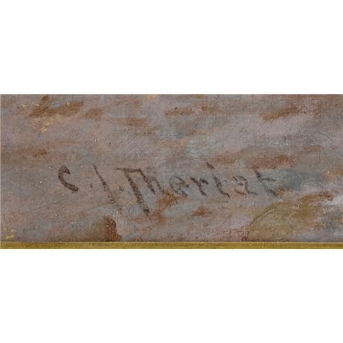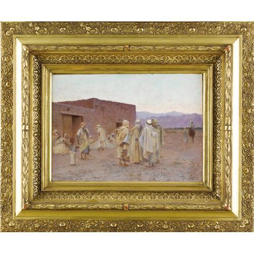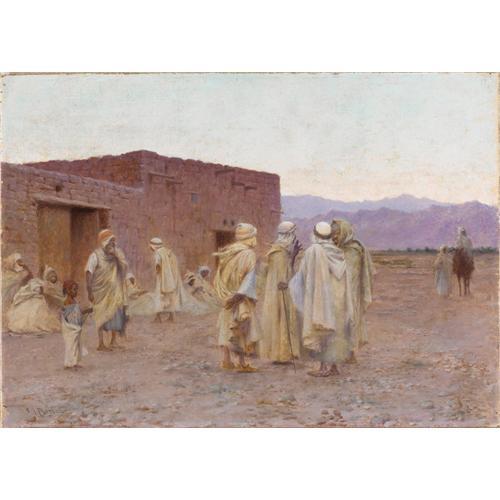 <B>CHARLES JAMES THERIAT</B></I> (American 1860-1937)<BR><I>Algerian Men</B></I><BR>Oil on canvas<BR>13 x 18-1/8 inches (33 x 46 cm)<BR>Signed lower left<BR><BR> <B>Condition Report:</B> scattered strengthening primarily in the sky, relined, possibly cleaned<BR><BR><b>Shipping:</b> Requires 3rd Party Shipping (<a target="_blank" href="http://www.heritageauctions.com/common/shipping.php">view shipping information</a>)