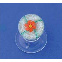Lot 77 CHARLES KAZIUN JR. PEDESTAL PAPERWEIGHT. Orange and yellow spider lily decoration on a white ground with gold aventurine flecks. Signed on bottom with gold “K”. SIZE: 2” t. CONDITION: Very good to excellent. 5-69141 (200-400)