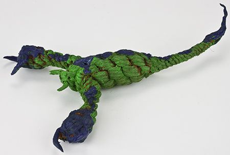 (b.1934) Drifter whose "family" committed the infamous Tate-LaBianca murders in 1969. So far has eluded the gas chamber. A very rare prison-made Manson "souvenir", a 10" long scorpion woven by Manson from orange twine which he has painted which he has painted green and blue. Very good. Nearly identical to the 14" example offered by us last year, made by Manson and sold with a signed envelope (torn), Tamal, Ca., Dec. 17, 1986. This example lacks the envelope but originates from the same consignor. Early and extremely rare, as Manson is no longer permitted access to similar craft materials and may not send them beyond prison walls.