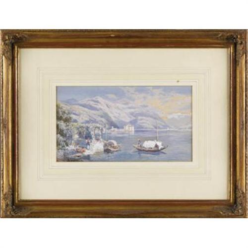 <B>CHARLES ROWNOTHAM</B></I> (British 1856-1921)<BR><I>The Castle of Canero, Lake Maggiore,</B></I> 1901<BR>Watercolor on paper<BR>6-1/8 x 10-3/4 inches (15.6 x 27.3 cm)<BR>Signed and dated lower left:<I> Chas Rownotham / 1901</B></I><BR><BR>Exhibition:<BR>The Lower Nupend Gallery, <I>Fine English Nineteenth Century Watercolors</B></I>, September 1979, Upper Montclair, New Jersey<B>Condition Report:</B> Original condition<BR><BR><b>Shipping:</b> Requires 3rd Party Shipping (<a target="_blank" href="http://www.heritageauctions.com/common/shipping.php">view shipping information</a>)