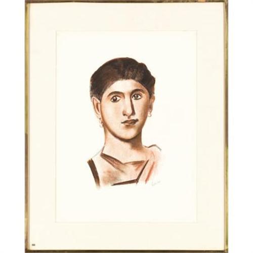 <B>CHARLES SHEELER (American, 1883-1965)</B></I><BR><I>Portrait of a Woman</B></I>, 1924<BR>Conte crayon on paper<BR>20 x 14 inches (50.8 x 35.6 cm)<BR>Signed and dated lower right: <I>Sheeler 1924</B></I><BR> <BR>PROVENANCE:<BR>Terry Dintenfass, Inc., New York (label verso);<BR>The Downtown...(torn label verso).<B>Condition Report:</B> Not examined outside of frame.<BR><BR><b>Shipping:</b> Requires 3rd Party Shipping (<a target="_blank" href="http://www.heritageauctions.com/common/shipping.php">view shipping information</a>)