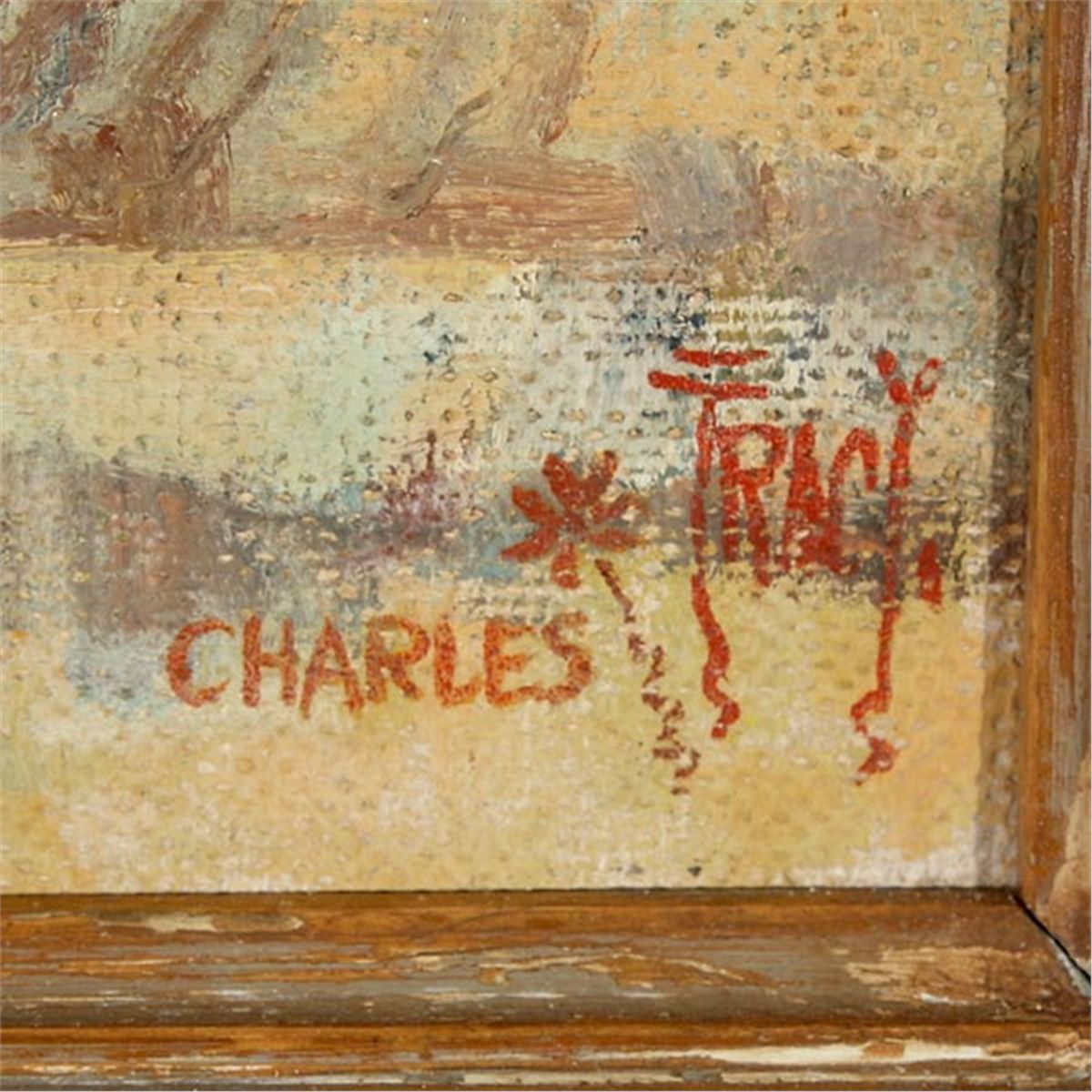 CHARLES TRACY (American 20th Century) Near Kingman Oil on masonite 16 x 20 inches/ 40.6 x 50.8 centimeters Signed lower right "Charles Tracy" Frame: 18.75 x 21.25 inches/ 47.6 x 54 centimeters In good condition.  Framed